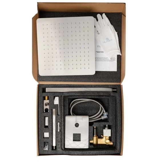 Душевой шланг, Душевая лейка, Подключение для душевого шланга с держателем, Верхний душ, Скрытая монтажная часть, Смеситель, Кронштейн