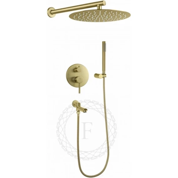 Душевой комплект Filarete Roun FL1023MG 300 мм, со смесителем, золотой матовый