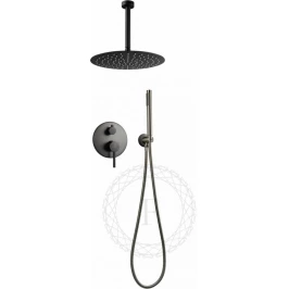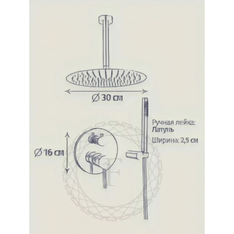 Душевой шланг, Душевая лейка, Подключение для душевого шланга с держателем, Верхний душ, Скрытая монтажная часть, Смеситель, Кронштейн