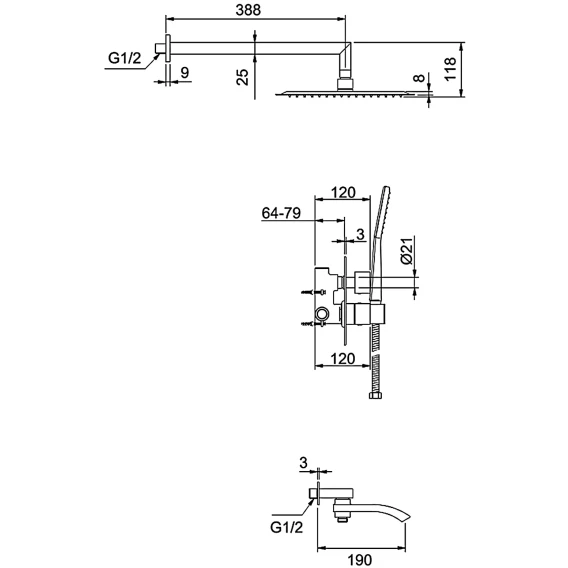 Аэратор, Душевой шланг, Душевая лейка, Держатель для душевой лейки, Верхний душ, Излив, Скрытая монтажная часть, Кронштейн, Термостат
