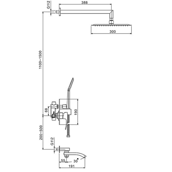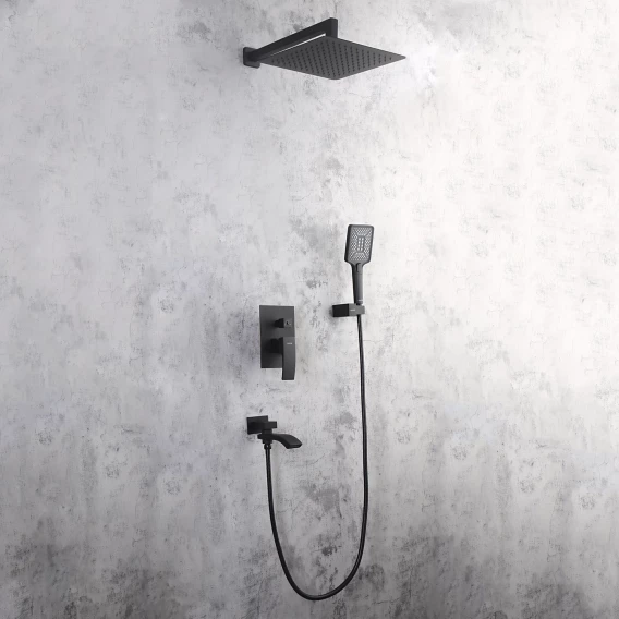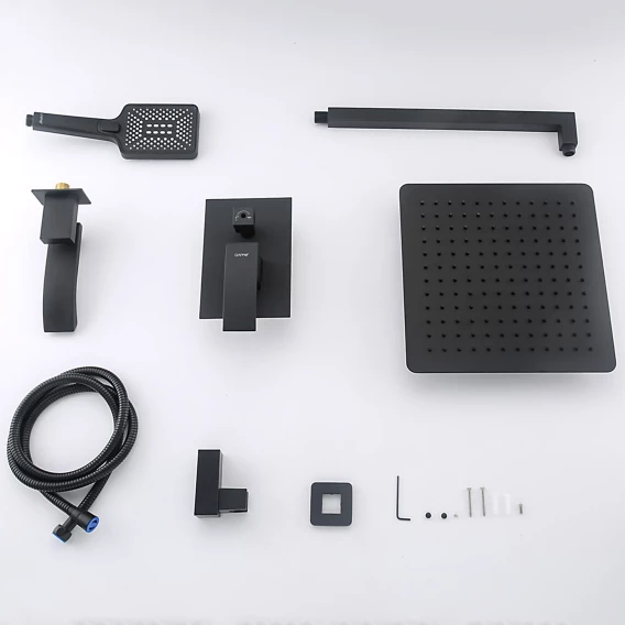 Душевой комплект Gappo G7107-6 300 мм, со смесителем, черный матовый