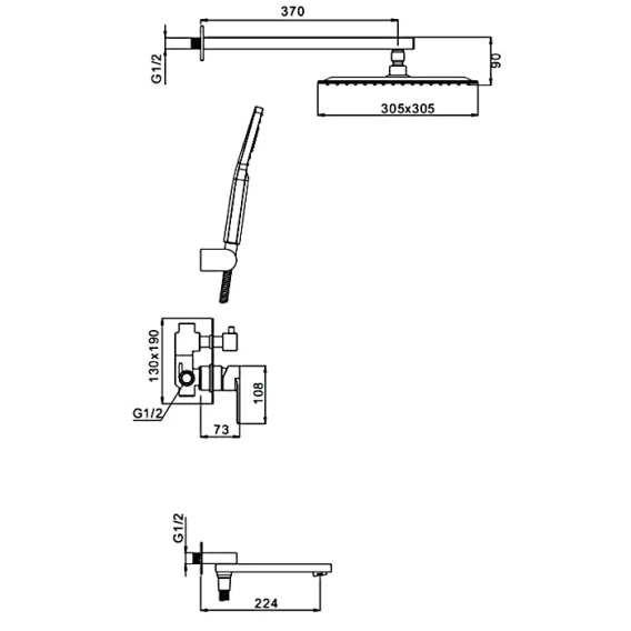 Душевой комплект Gappo G7199-20 305 мм, со смесителем, сатин