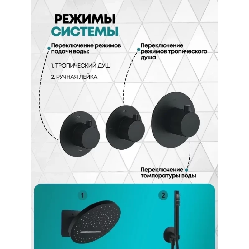 Душевой шланг, Душевая лейка, Подключение для душевого шланга с держателем, Верхний душ, Скрытая монтажная часть, Кронштейн, Термостат