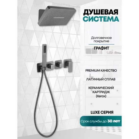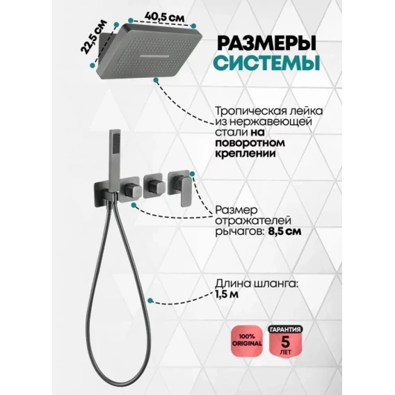 Душевой комплект Grocenberg GB5030BG 405x225 мм, со смесителем, графит