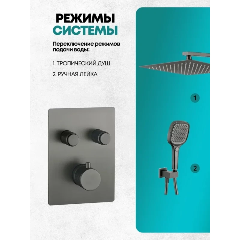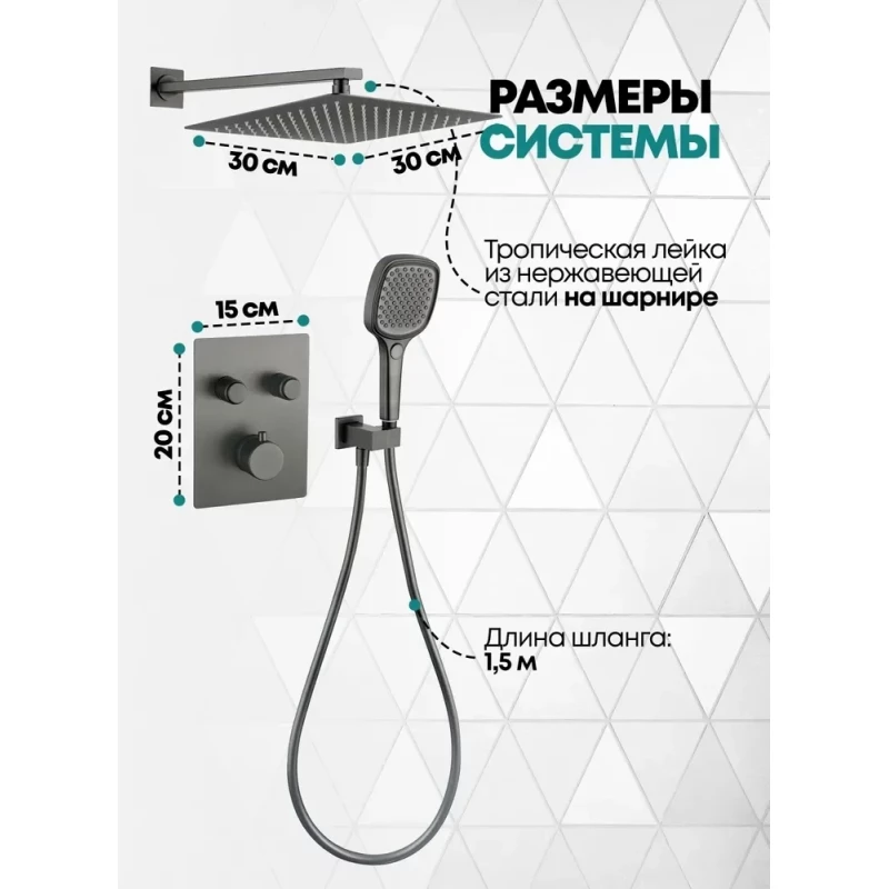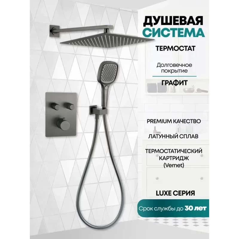 Душевой комплект Grocenberg GB5040BG 300 мм, с термостатом, графит