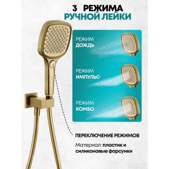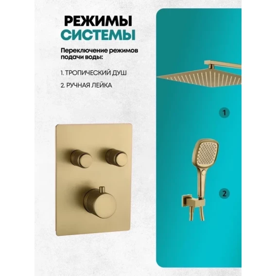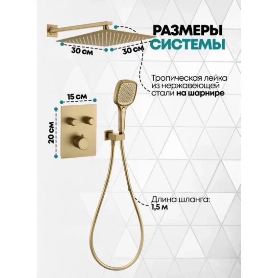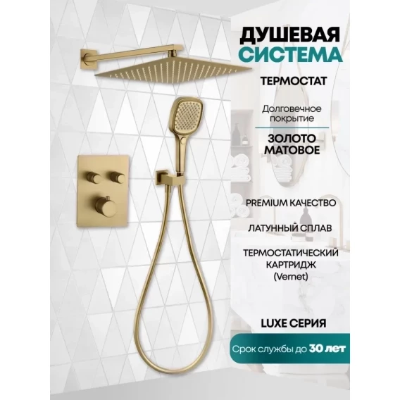 Душевой комплект Grocenberg GB5040MG 300 мм, с термостатом, золотой матовый