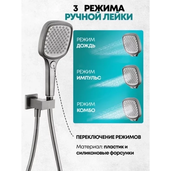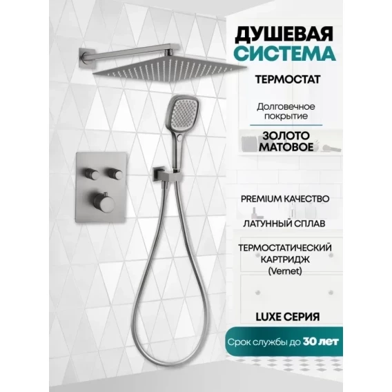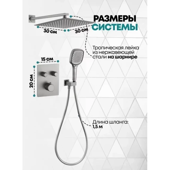 Душевой шланг, Душевая лейка, Подключение для душевого шланга с держателем, Верхний душ, Скрытая монтажная часть, Кронштейн, Термостат
