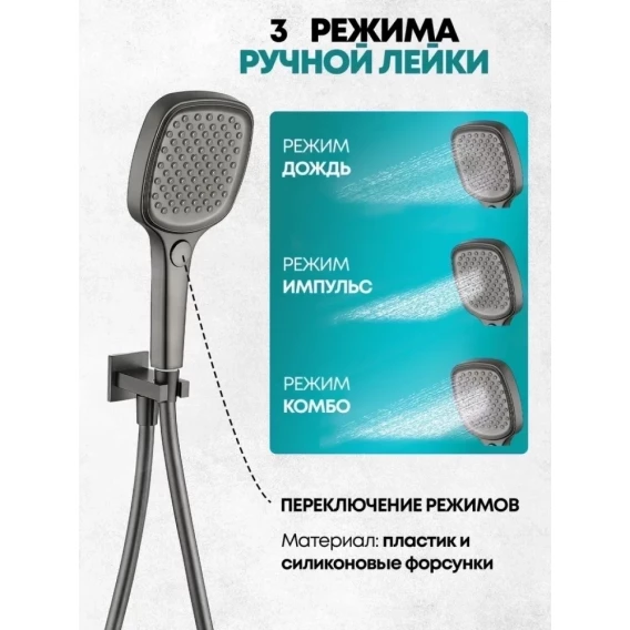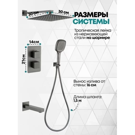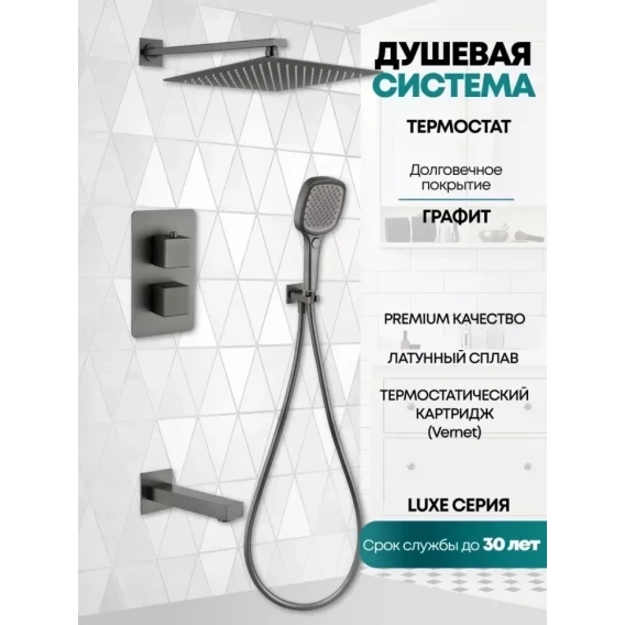 Душевой комплект Grocenberg GB5050BG 300 мм, с термостатом, графит