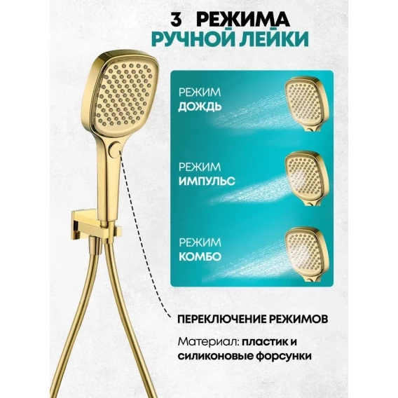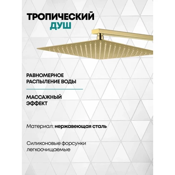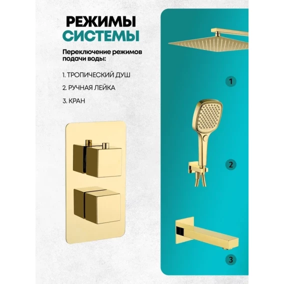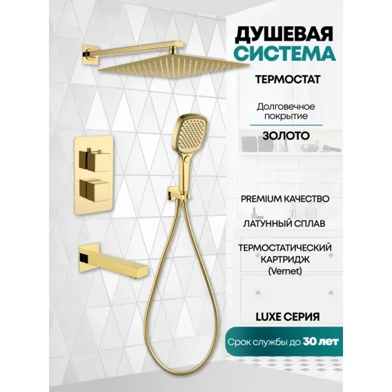 Душевой комплект Grocenberg GB5050GO 300 мм, с термостатом, золотой