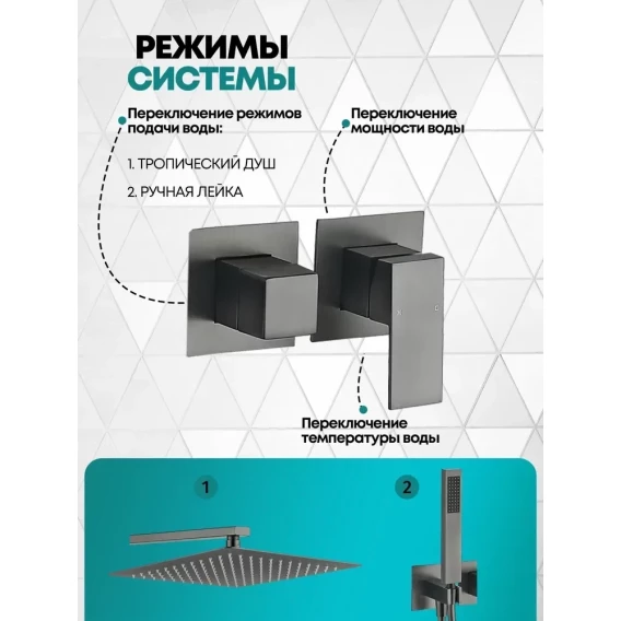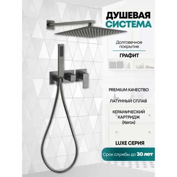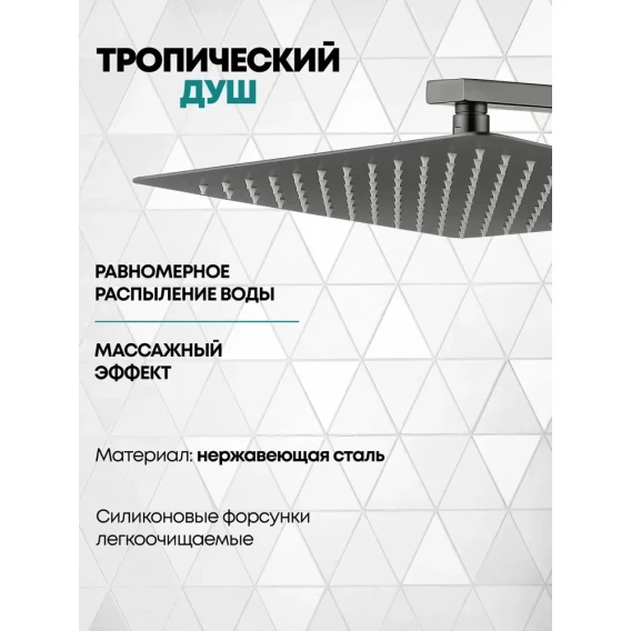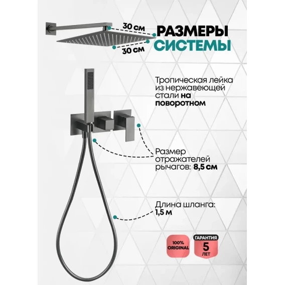 Душевой комплект Grocenberg GB5080BG 300 мм, со смесителем, графит
