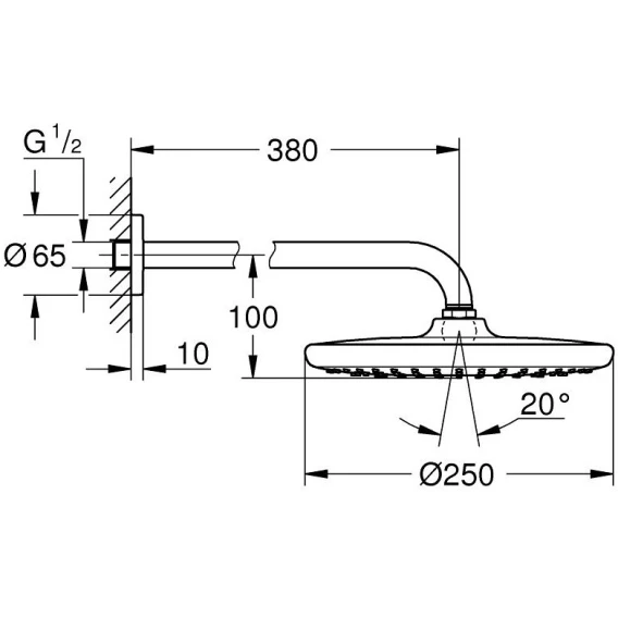 Душевой комплект Grohe BauEdge New 1000190 250 мм, со смесителем, хром