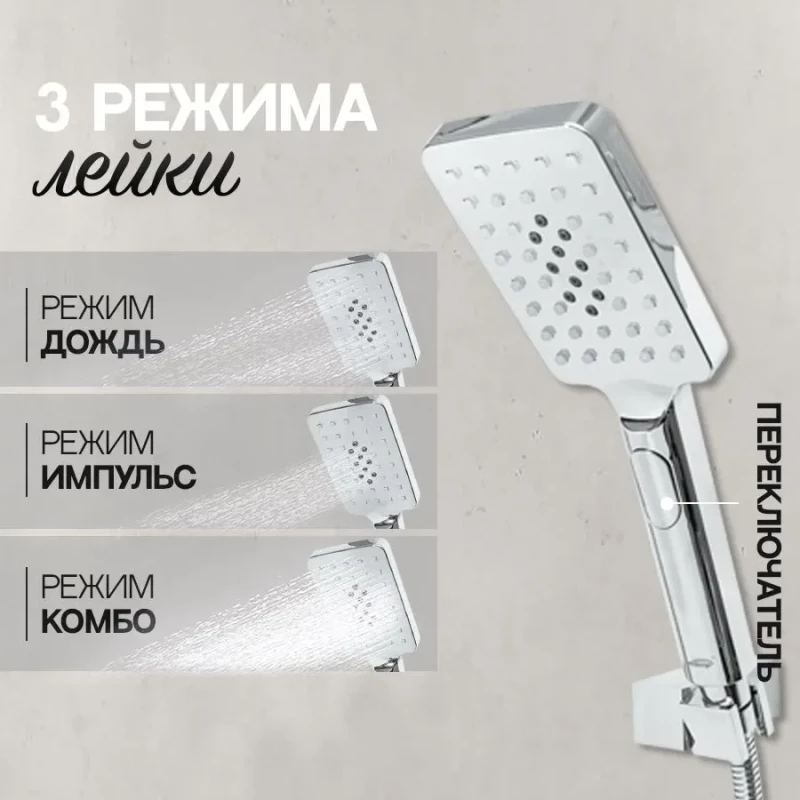 Душевой комплект Hansberge Cubito H6077C 300 мм, со смесителем, хром