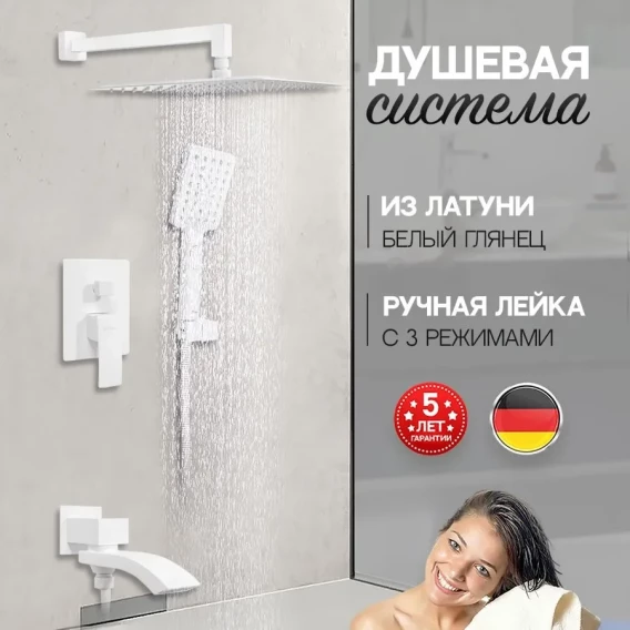 Душевой комплект Hansberge Cubito H6077WW 300 мм, со смесителем, белый