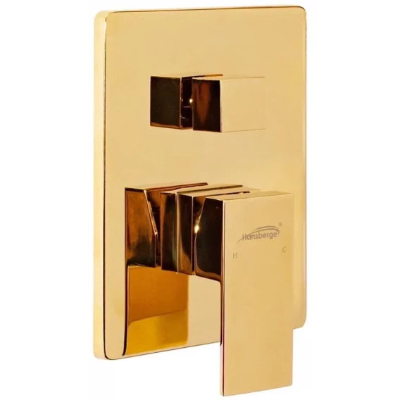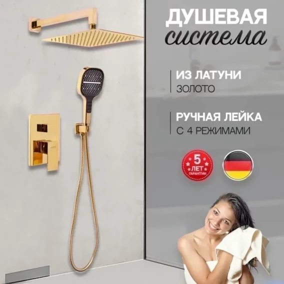 Душевой комплект Hansberge H6070GO 300 мм, со смесителем, золотой