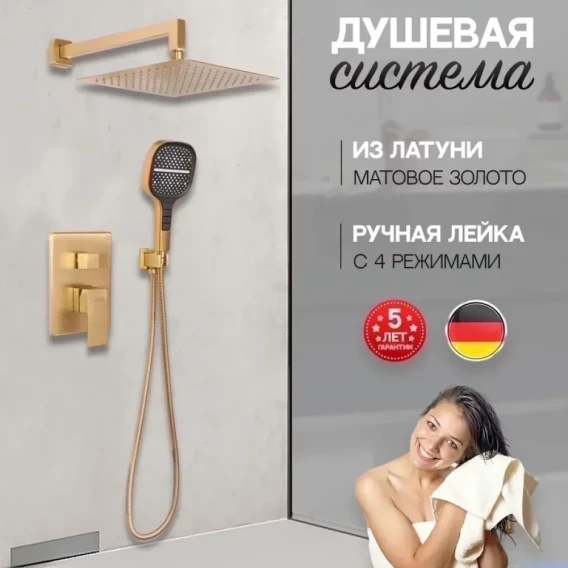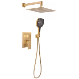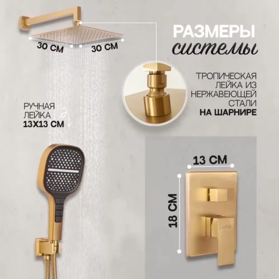 Душевой комплект Hansberge H6070MG 300 мм, со смесителем, золотой матовый