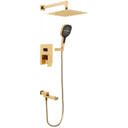 Душевой комплект Hansberge H6075GO 300 мм, со смесителем, золотой