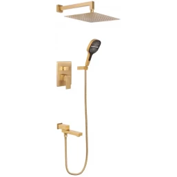Душевой комплект Hansberge H6075MG 300 мм, со смесителем, золотой матовый