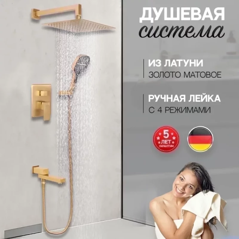 Аэратор, Душевой шланг, Душевая лейка, Держатель для душевой лейки, Подключение для душевого шланга, Верхний душ, Излив, Скрытая монтажная часть, Смеситель, Кронштейн