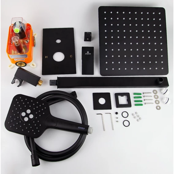 Душевой шланг, Душевая лейка, Подключение для душевого шланга с держателем, Верхний душ, Скрытая монтажная часть, Смеситель, Кронштейн