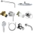 Аэратор, Душевой шланг, Душевая лейка, Подключение для душевого шланга с держателем, Верхний душ, Излив, Скрытая монтажная часть, Смеситель, Кронштейн