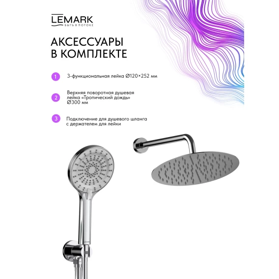 Душевой комплект Lemark Beluga LMF-8055B-C 300 мм, со смесителем, хром