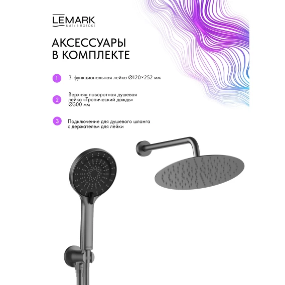 Душевой комплект Lemark Beluga LMF-8055B-GM 300 мм, со смесителем, графит матовый
