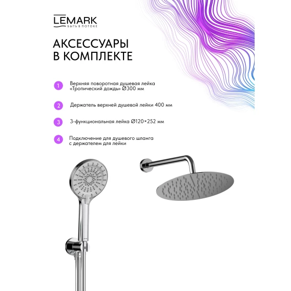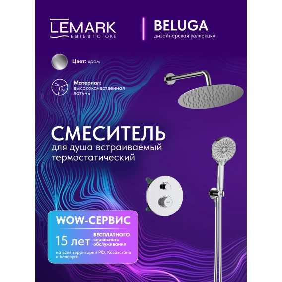 Душевой комплект Lemark Beluga LMF-8065B-C 300 мм, с термостатом, хром