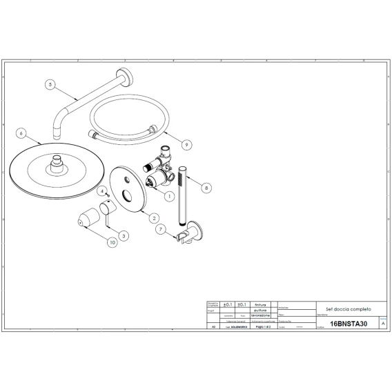 Душевой шланг, Душевая лейка, Подключение для душевого шланга с держателем, Верхний душ, Скрытая монтажная часть, Смеситель, Кронштейн