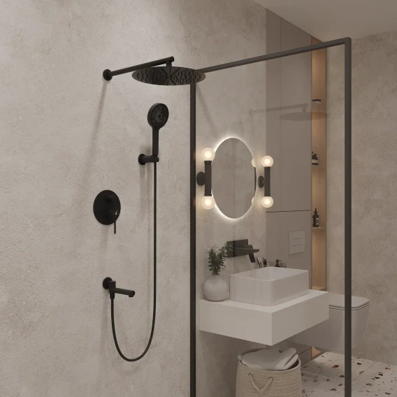 Душевой комплект Oliveeka Y OL-939017-MB 300 мм, со смесителем, черный матовый