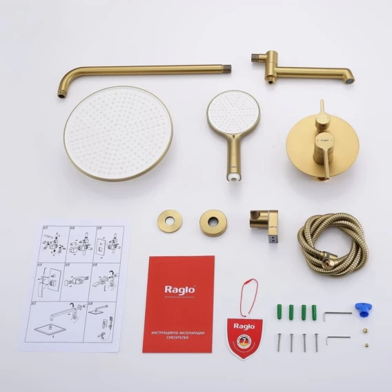 Душевой комплект Raglo R20.27.03 250 мм, со смесителем, золотой матовый