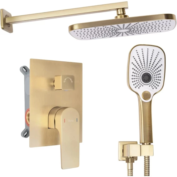 Душевой комплект Rea Moby REA-P2403 300x185 мм, со смесителем, золотой матовый