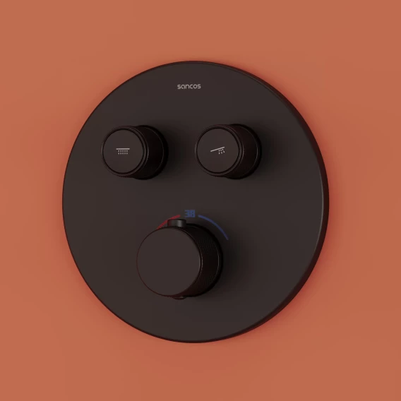 Душевой комплект Sancos Link SC3005MB 300 мм, с термостатом, черный матовый