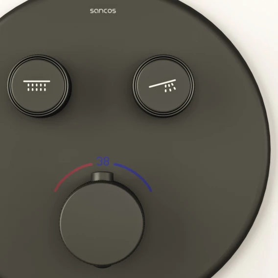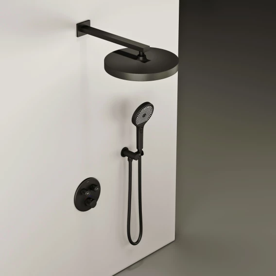 Душевой комплект Sancos Space SC3006MB 320 мм, с термостатом, черный матовый