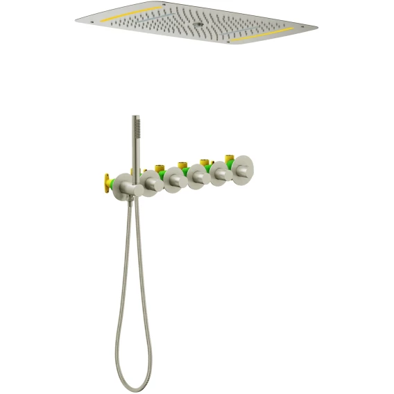 Душевой шланг, Душевая лейка, Подключение для душевого шланга с держателем, Подсветка, Верхний душ, Скрытая монтажная часть, Термостат
