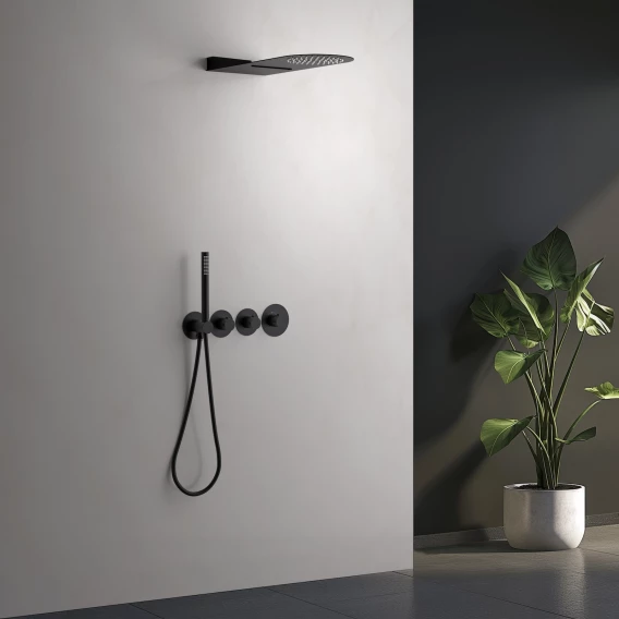 Душевой шланг, Душевая лейка, Подключение для душевого шланга с держателем, Верхний душ, Скрытая монтажная часть, Кронштейн, Штанга душевая, Термостат
