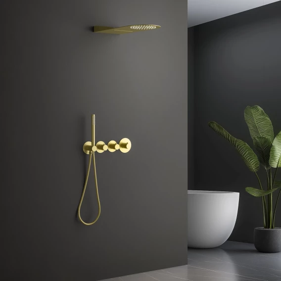 Душевой комплект Timo Saona SX-2350/17SM 230 мм, с термостатом, золотой матовый