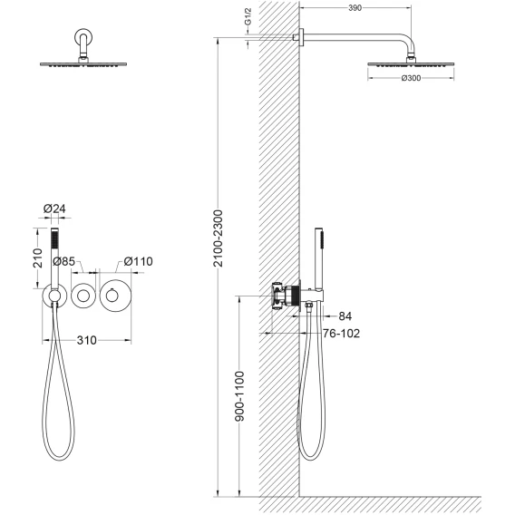Душевой шланг, Душевая лейка, Подключение для душевого шланга с держателем, Верхний душ, Скрытая монтажная часть, Кронштейн, Штанга душевая, Термостат