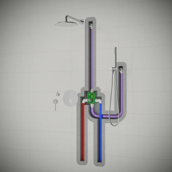 Душевой шланг, Душевая лейка, Подключение для душевого шланга с держателем, Верхний душ, Скрытая монтажная часть, Смеситель, Кронштейн