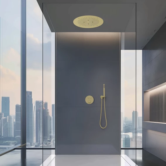 Душевой шланг, Душевая лейка, Подключение для душевого шланга с держателем, Верхний душ, Скрытая монтажная часть, Штанга душевая, Термостат