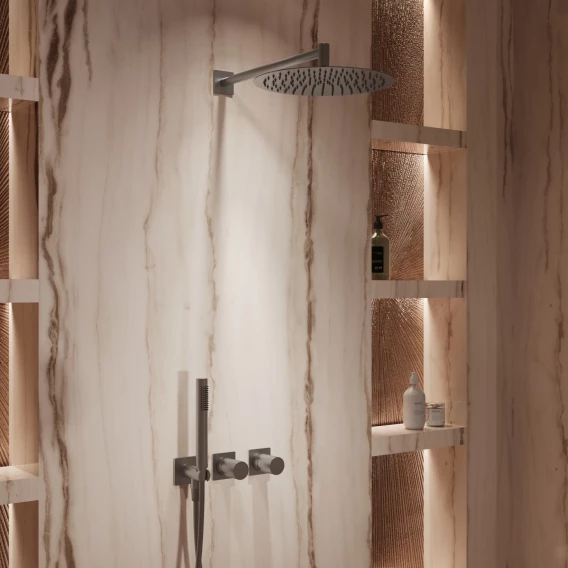 Душевой комплект Vincea Alto VSFW-6AL1GM 300 мм, со смесителем, вороненая сталь