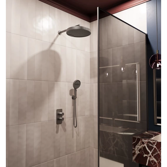 Душевой комплект Vincea Domus VSFW-5DM0GM 300 мм, со смесителем, вороненая сталь