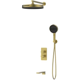 Душевой комплект Vincea Domus VSFW-5DM1BG 300 мм, со смесителем, золотой матовый