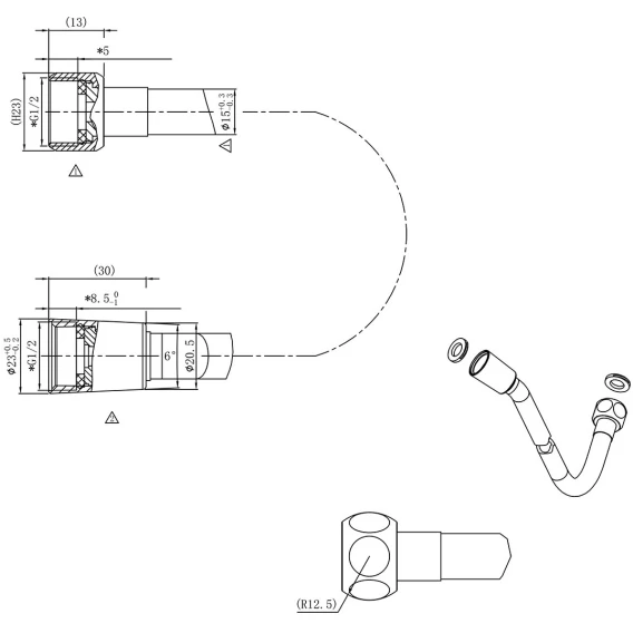 Аэратор, Душевой шланг, Душевая лейка, Подключение для душевого шланга с держателем, Верхний душ, Излив, Скрытая монтажная часть, Смеситель, Кронштейн