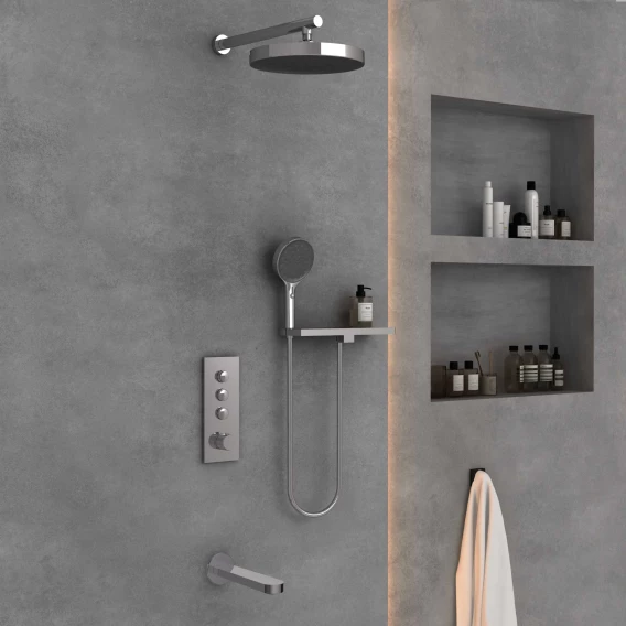 Аэратор, Душевой шланг, Душевая лейка, Подключение для душевого шланга с держателем, Полочка, Верхний душ, Излив, Скрытая монтажная часть, Кронштейн, Термостат
