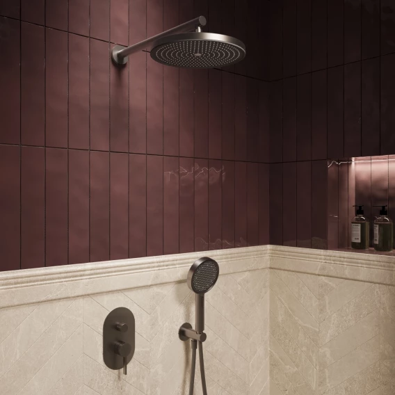 Душевой комплект Vincea TG VSFW-5TG0GM 250 мм, со смесителем, вороненая сталь