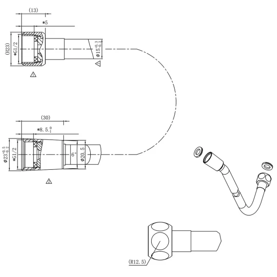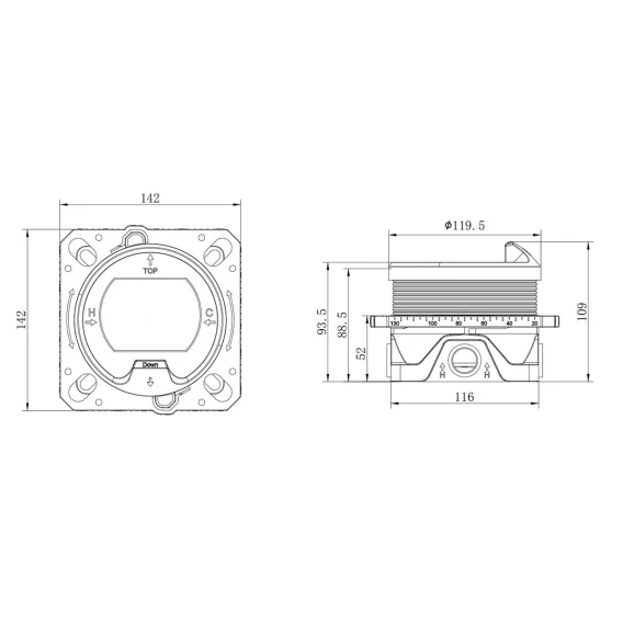 Душевой шланг, Душевая лейка, Подключение для душевого шланга с держателем, Верхний душ, Скрытая монтажная часть, Кронштейн, Термостат