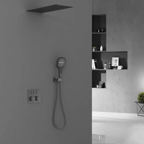 Душевой комплект Vincea VSFW-401TGM 250 мм, с термостатом, вороненая сталь