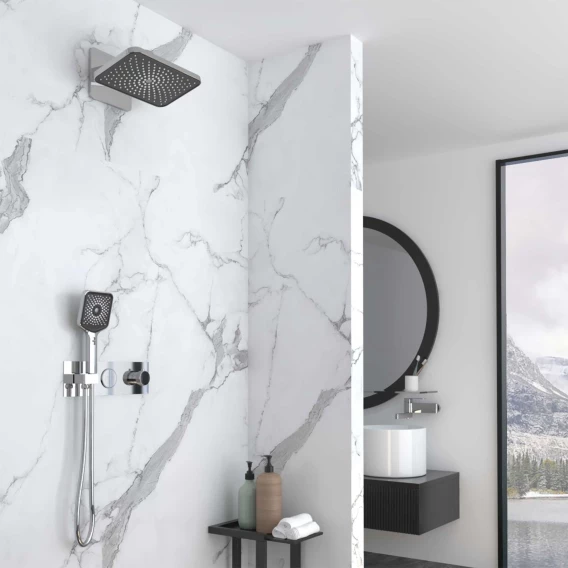 Душевой шланг, Душевая лейка, Подключение для душевого шланга с держателем, Верхний душ, Скрытая монтажная часть, Кронштейн, Термостат