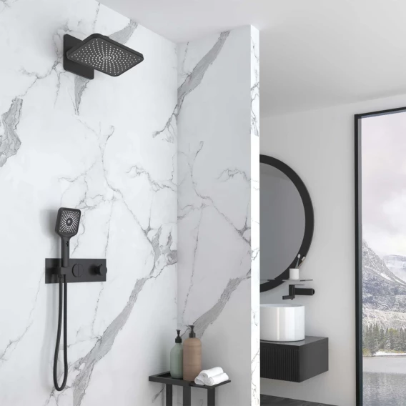 Душевой комплект Vincea VSFW-422TI4MB 320x200 мм, с термостатом, черный матовый