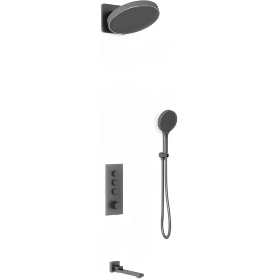 Душевой комплект Vincea VSFW-433TI3GM 300 мм, с термостатом, вороненая сталь